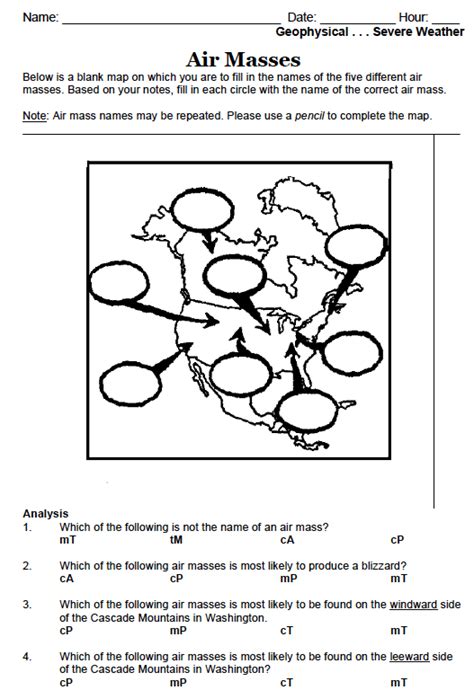 Web This Worksheet Was Designed To Guide Students To Use Their Prior Knowledge And Schema When Determining And Naming Air Masses That Affect Weather In The Us.