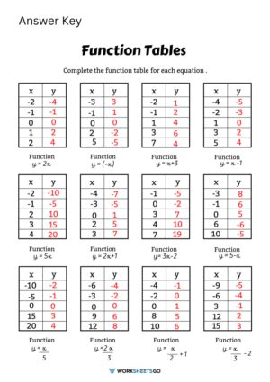 Answer Key Function Table Worksheets Answers. You can make these tables in vertical and horizontal (up down or side to side) pattern. Function table worksheet answer key.
